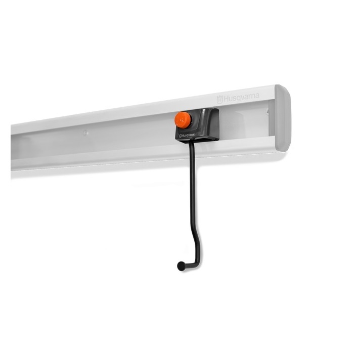 Háček pro pohodlné uložení vašeho nářadí. Kompaktní design a snadná montáž na zeď nebo zavěšení na lištu. Vhodné pro všechny výrobky Husqvarna s dírkou na pověšení. Je kompatibilní se stávajícím úložným systémem Husqvarna.